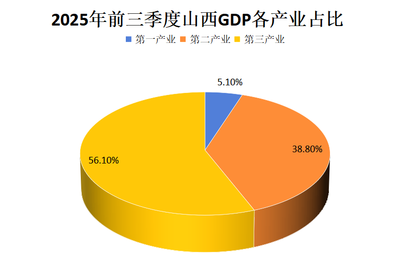 根据地区生产总值统一核算结果,山西省2025年前三季度地区生产总值(GDP)为17806.53亿元,按不变价格计算,同比增长4.0%。其中,第一产业增加值为913.53亿元,增长4.0%;第二产业增加值为6907.25亿元,增长3.5%;第三产业增加值为9985.75亿元,增长4.3%。