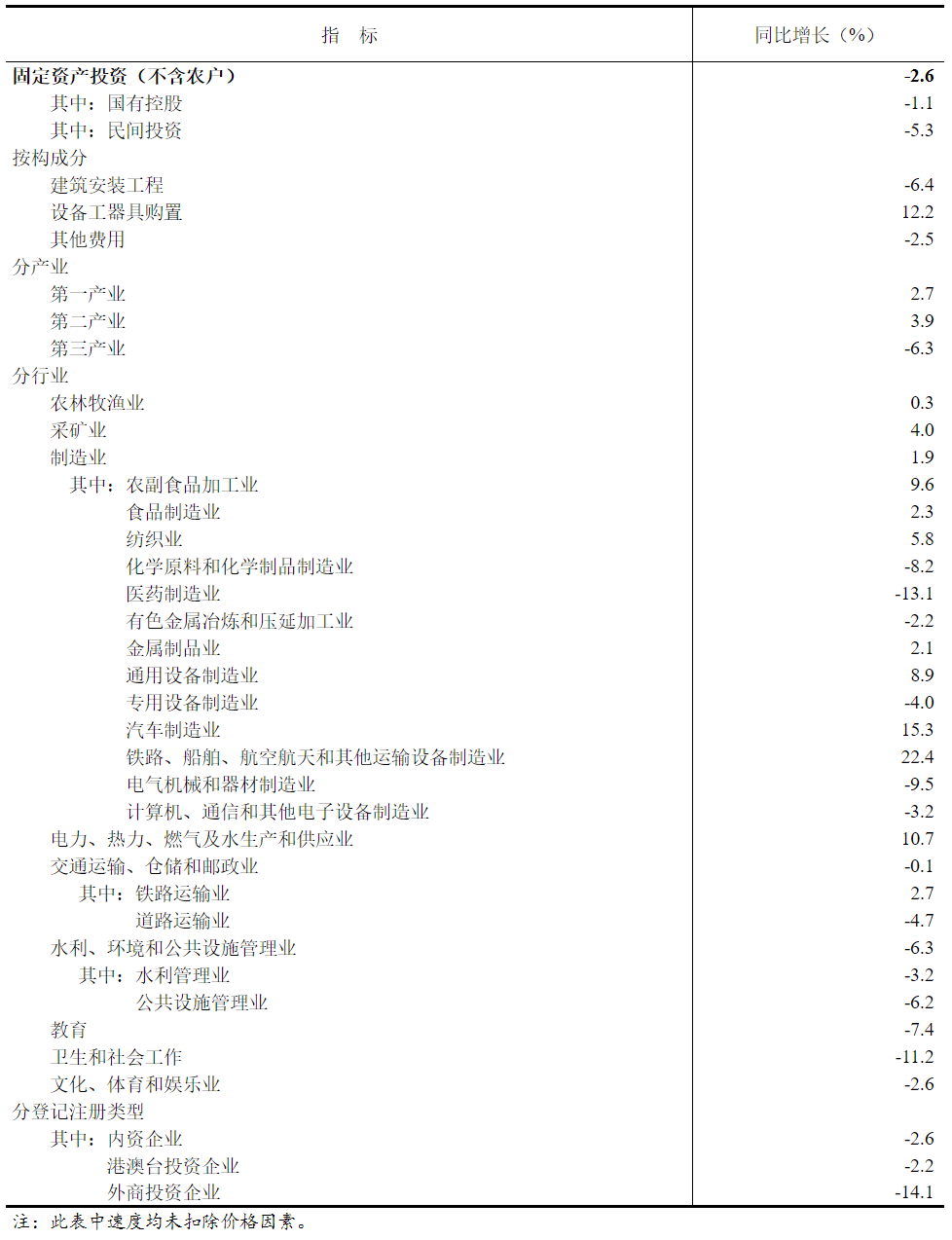 - 内资企业:固定资产投资同比下降2.6%。